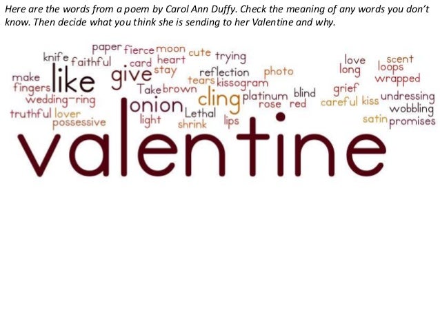 In particular, our desire for love and the influence this has on our lives has constantly been the subject of literature. Valentine is a controversial love poem written by carol ann duffy. Carol ann duffy and a summary of valentine.